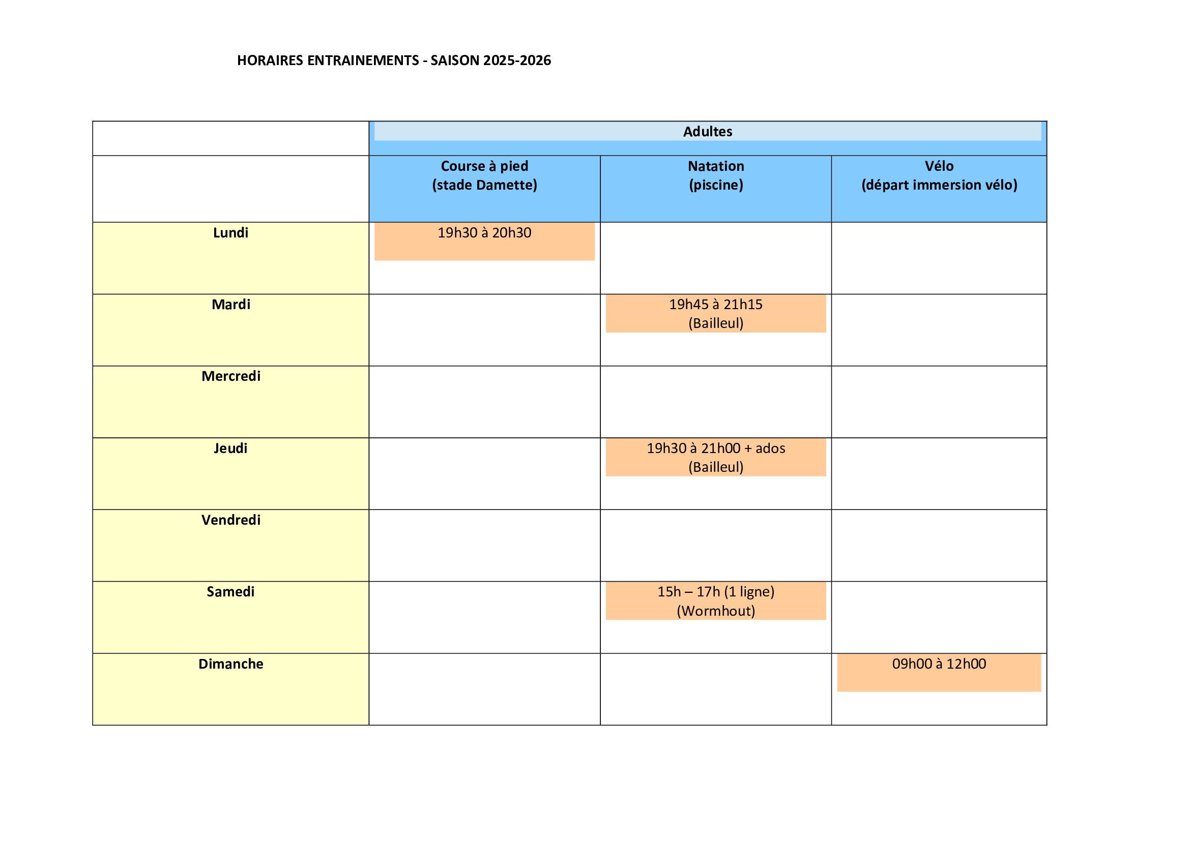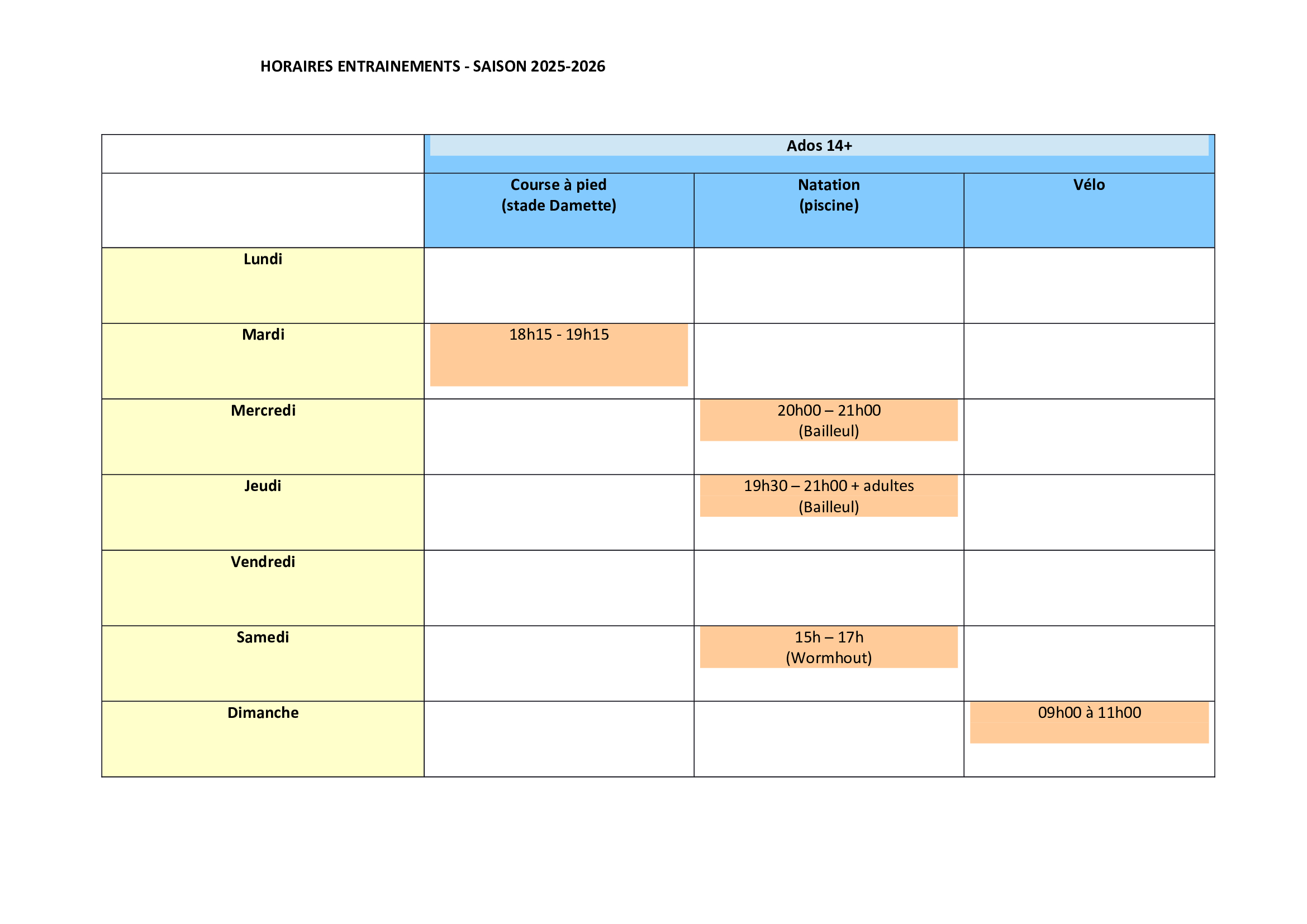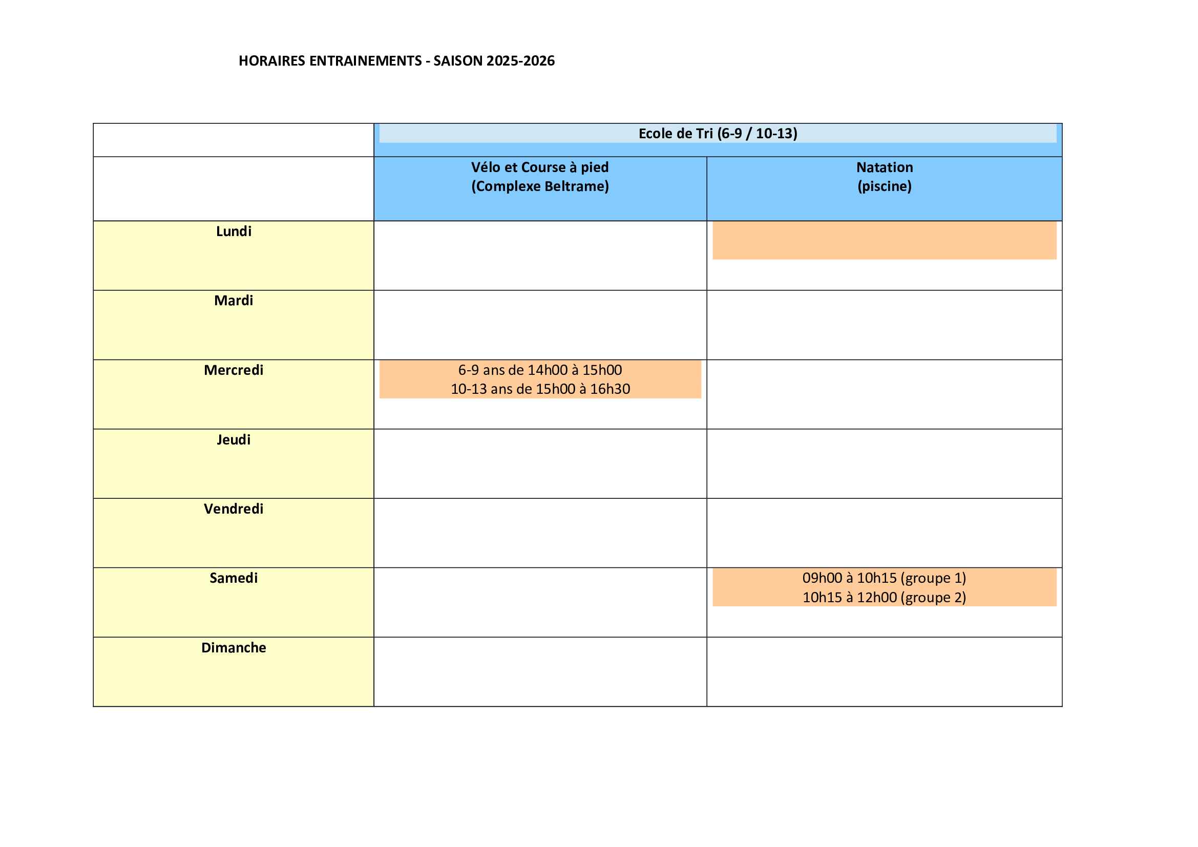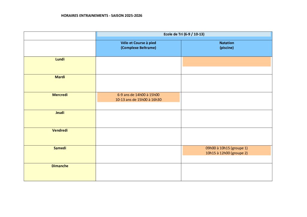 Horaires des entraînements Partager : Cliquez pour partager sur Facebook(ouvre dans une nouvelle fenêtre) Facebook Cliquer pour partager sur X(ouvre dans une nouvelle fenêtre) X